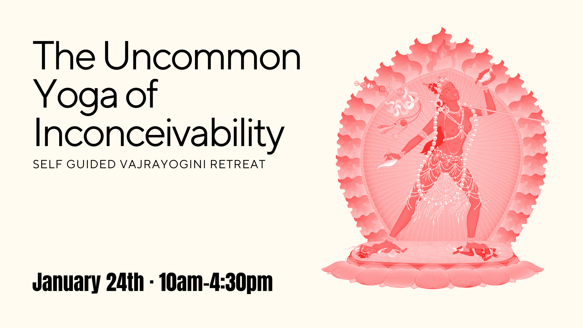 During this retreat, we will engage in the profound transference of consciousness practice called the Uncommon Yoga of Inconceivability. This practice is unique to Vajrayogini Tantra and reveals a priceless instruction through which we can accomplish Keajra Pure Land in this life without abandoning our human body. **This retreat is open to those who have […] |